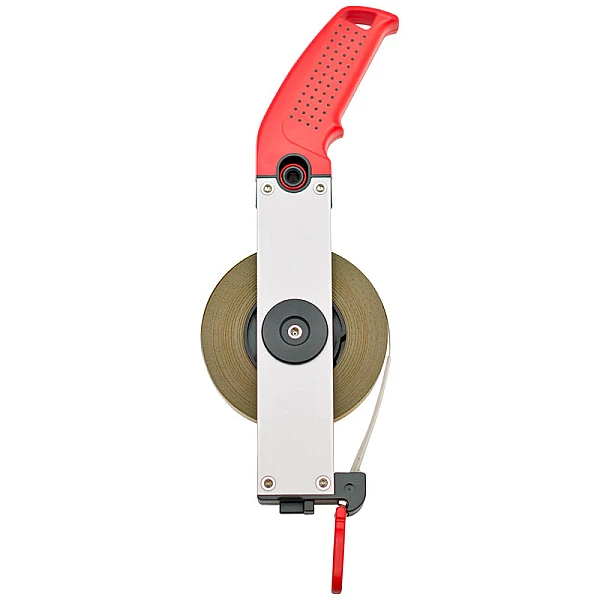 Крепление ленты рулетки BMI ERGOLINE 20 M осуществляется к специальному устройству, расположенному в передней части прибора. За счет этого конструктивного решения, нет риска попадания ленты в механизм сматывания.