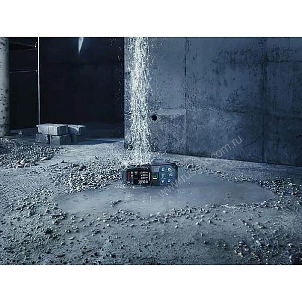Дальномер станет отличным выбором для стройки за счет устойчивости к падениям и пыле-влагозащите корпуса по классу IP65. Корпус оборудован амортизирующими резиновыми накладками, которые эффективно гасят и рассеивают энергию удара.