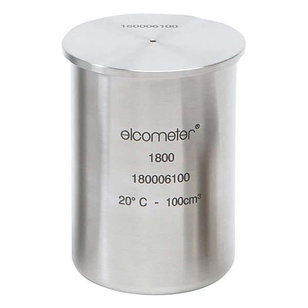 Прецизионный прибор из нержавеющей стали для определения удельного веса красок и схожих продуктов. Прибор состоит из цилиндрического контейнера и крышки с отверстием для выхода излишков тестируемой жидкости. Пикнометр может поставляться с гирей-противовесом или без нее для взвешивания на весах.