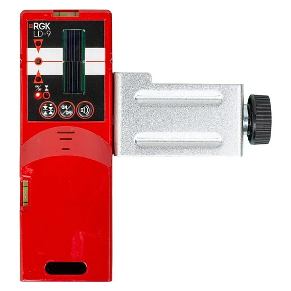 Универсальный приемник излучения RGK LD-9 с односторонним дисплеем для лазерных нивелиров (построителей плоскости) позволяет работать с приборами, когда лазерная плоскость невидима, а также служит для увеличения рабочего диапазона лазерных нивелиров до 50-70 м. Работает с красным и зеленым цветами лазеров.