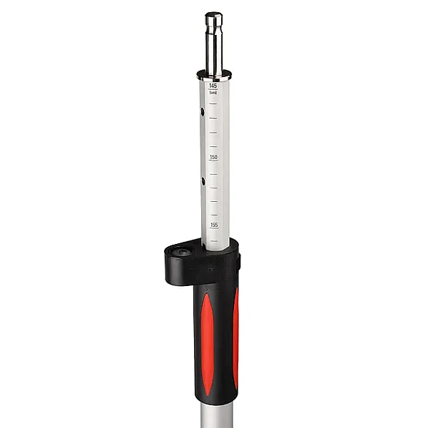 За счет раздвижной конструкции, с максимальным вылетом 2 м, в сложенном положении длина геодезической вешки не превышает 137 см, что упрощает ее транспортирование и хранение. Наружная секция телескопического устройства снабжена в верхней части удобной накладной ручкой, которая позволяет комфортно удерживать изделие, не допуская его проскальзывания и исключая деформационные изменения инструмента вследствие расширения металла от тепла человеческой руки. Разблокировка выдвижной системы производится с помощью подпружиненной кнопки, что позволяет быстро менять рабочую длину вехи. Наличие круглого пузырькового уровня на выступе сверху ручки помогает выставить инструмент вертикально и удерживать его в правильном положении без дополнительных принадлежностей.